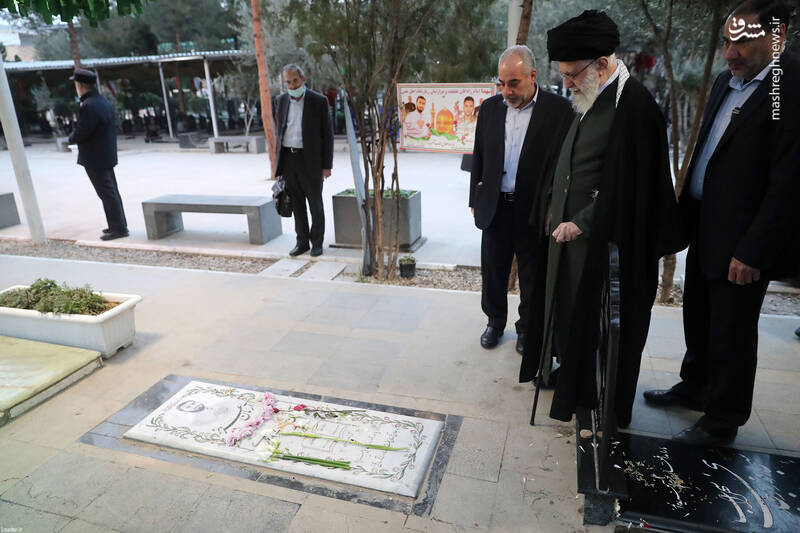 حضرت آیت‌الله خامنه‌ای سپس در گلزار شهیدان سرافراز حضور یافتند و به ارواح مطهر مدافعان اسلام و ایران ادای احترام کردند.