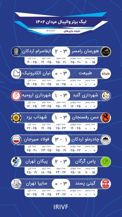 در ششمین مسابقه این هفته تیم هورسان رامسر در سالن شهید صدر میزبان ایفاسرام اردکان بود و سه بر دو حریف خود را شکست داد تا دو امتیاز از این مسابقه به دست آورد. شاگردان رحمان محمدیراد در ستهای اول و دوم با امتیاز مشابه ۲۵ بر ۱۹ به پیروزی رسیدند و در ستهای سوم و چهارم ۲۵ بر ۲۱ و ۲۵ بر ۲۰ نتیجه را واگذار کردند تا مسابقه به ست حساس پنجم کشیده شود. در ست پنجم هورسان رامسر به بازی برگشت و ۱۵ بر ۱۱ به پیروزی رسید تا دومین برد خود را به دست آورد.